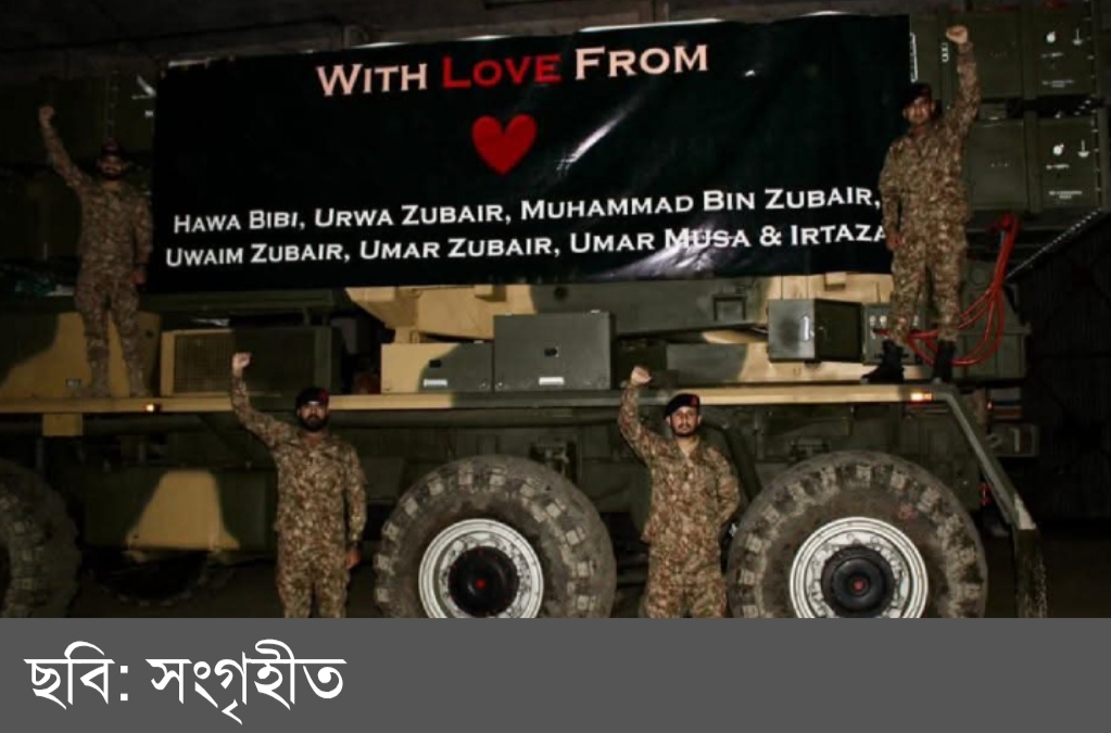 এদিকে, দেশটির আইএসপিআর একটি ছবি প্রকাশ করেছে। ছবিতে দেখা যায়, একটি ক্ষেপণাস্ত্রবাহী গাড়ির গায়ে নিহত শিশুদের নাম সংবলিত একটি ব্যানার ঝুলিয়ে রাখা হয়েছে। এই শিশুরা পাকিস্তানের বেসামরিক অঞ্চলে ভারতের হামলায় প্রাণ হারায়।