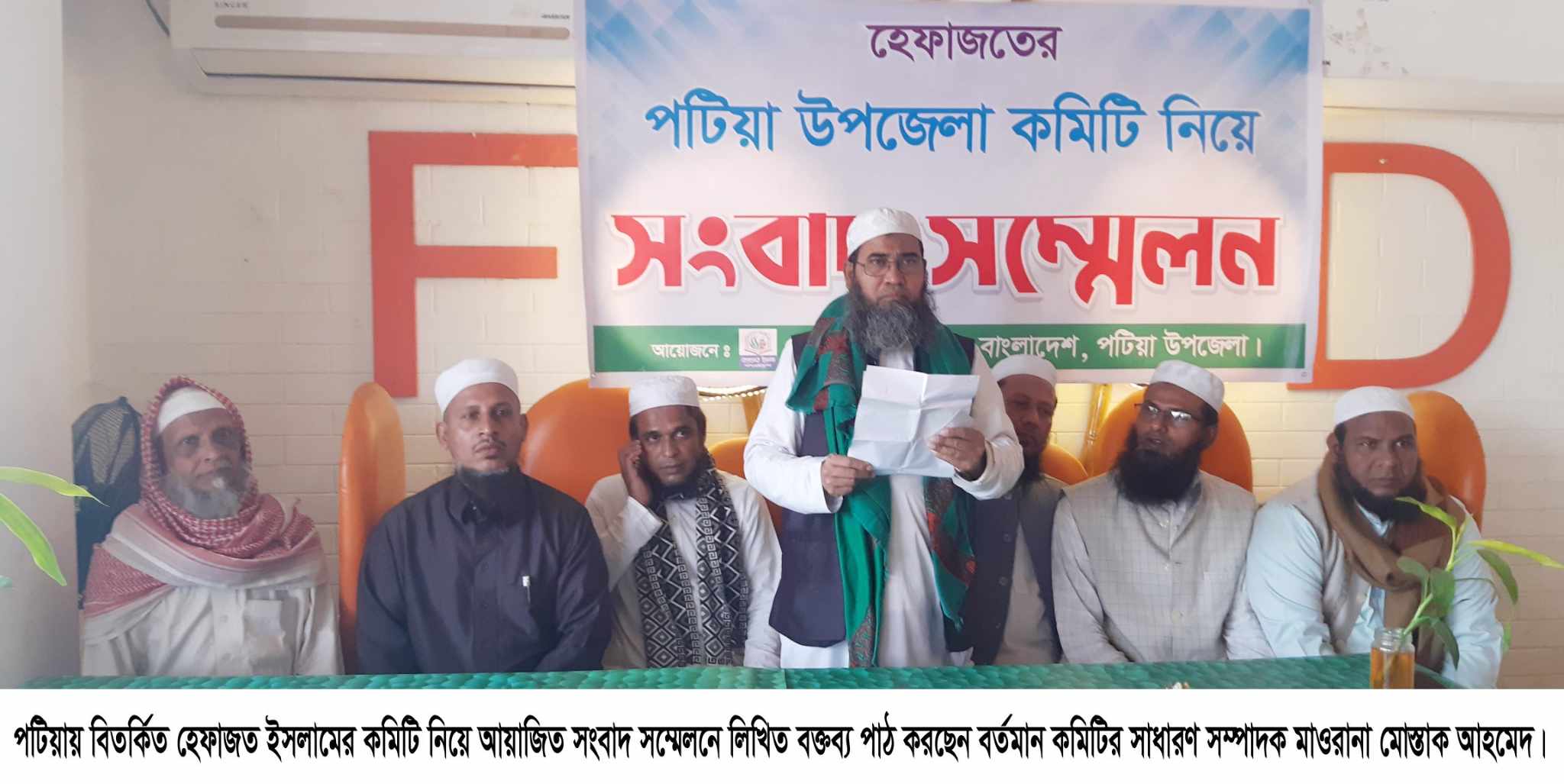 হেফাজত ইসলাম পটিয়া শাখার বিতর্কিত কমিটি বাতিলের দাবী জানিয়েছে বর্তমান কমিটির সভাপতি, সাধারণ সম্পাদকসহ নেতৃবৃন্দ। গতকাল (বুধবার) পটিয়ায় একটি রেস্টুরেন্টে আয়োজিত এক সংবাদ সম্মেলনে নেতৃবৃন্দরা এ দাবী জানান। সংবাদ সম্মেলনে উপস্থিত ছিলেন হেফাজত ইসলাম পটিয়া উপজেলা কমিটির সভাপতি কৈয়গ্রাম মাদ্রাসার পরিচালক মাওলানা আতাউল্লাহ্, সাধারন সম্পাদক খরনা ইসলামিয়া মাদ্রাসার পরিচালক মাওলানা মোস্তাক আহম্মদ, সহ সভাপতি মাওলানা আবু সুফিয়ান, মাওলানা হাফেজ নাছের, যুগ্ম সম্পাদক মাওলানা বেলাল, সাংগঠনিক সম্পাদক হাফেজ মাওলানা ইব্রাহিম, প্রচার সম্পাদক মাওলানা আজগর হোসাইন, মুফতি মাওলানা ওমর ফারুক প্রমুখ। নেতৃবৃন্দ বলেন হেফাজত ইসলাম আমির মুফতি আল্লামা মুহিবুল্লাহ্ বাবুনগরী গত ১৭ নভেম্বর মাওলানা আতাউল্লাকে সভাপতি ও মাওলানা মোস্তাককে সাধারন সম্পাদক করে ১০১ সদস্য বিশিষ্ট হেফাজত ইসলাম পটিয়া উপজেলা কমিটি ঘোষনা দেন। আওয়ামীলীগের সময়ে হেফাজতের যে সমস্ত নেতা কর্মী হামলা-মামলা ও কারা নির্যাতনের শিকার হয়েছে তাদের স্থান দেওয়া হয়। তিন মাস না যেতেই কিছু আওয়ামী ফ্যাসিবাদের দোষর নিজেদের রক্ষা করার জন্য একটি বিতর্কিত কমিটি সাজিয়ে গত ২৮ জানুয়ারী পটিয়া জিরি আলজামেয়া মাদ্রাসায় হেফাজতের আমির মুফতি আল্লামা মুহিবুল্লাহ্ বাবু নগরীকে প্রধান অতিথি করে আনুষ্টানিক ভাবে বিতর্কিত কমিটি ঘোষনা দেন। চলমান কমিটিকে না জানিয়ে একটি সুবিধাবাদী চক্র হেফাজত আমিরকে ভুল বুজিয়ে বিতর্কিত কমিটির অনুমোদন নেয়। এ কমিটির অনেকে আঃলীগ সরকারের সুবিধাভোগী দালাল। তাদের বিরুদ্ধে জায়গা দখল, ভূমিদস্যু, অবৈধ প্লট ব্যবসা লুটপাটের অভিযোগ রয়েছে। মাওলানা আজগর হোসাইন জানান, ভূমিদস্যু, দখলবাজ, অর্থআত্মসাৎকারী আব্দুর রহিম রাজন নামের এক ব্যক্তি আজিজুল হক ইসলামাবাদীকে নিয়ে জিরি মাদ্রাসার মুহতামিম মাওলানা খোবাইবকে ব্যবহার করে এ কমিটির ব্যবস্থা করেন। তারা অবিলম্বে এ কমিটি বাতিল করে গ্রহণ যোগ্য একটি কমিটি গঠনের জন্য হেফাজত ইসলামের আমিরসহ নেতবৃন্দের প্রতি দাবী জানান।