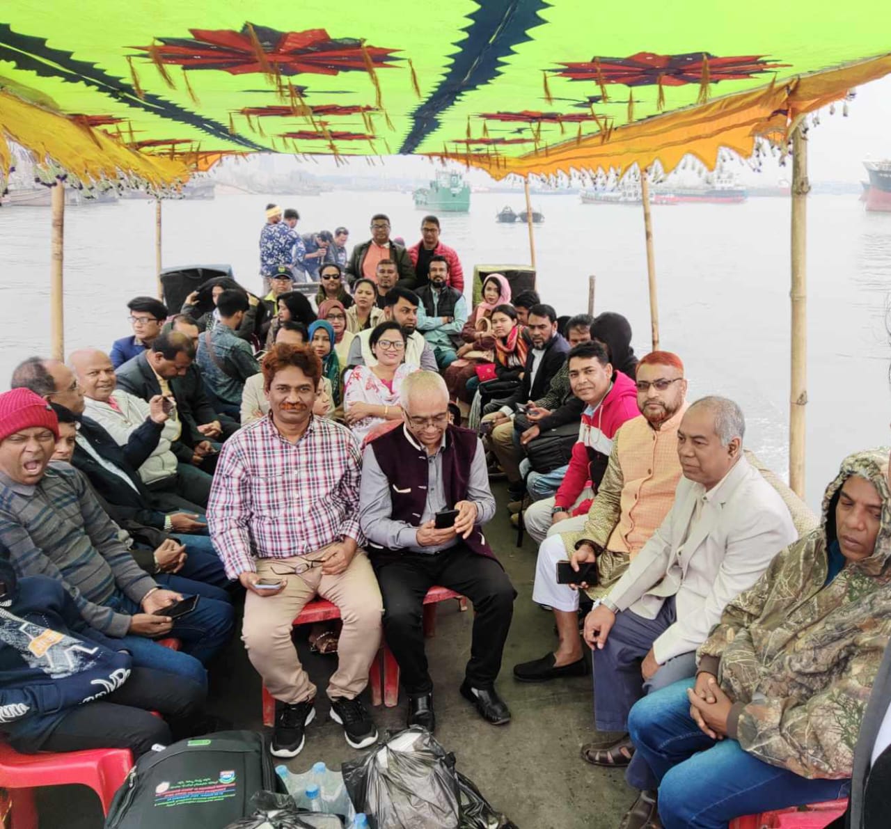 ভোরের কুয়াশার চাদর মুড়ে পৌষের শীতে শরীর কাপছে কর্ণফুলী নদীর বাতাসে মন ছুঁয়ে যাওয়া শীতের শুভ্রতায় ফুরফুরে মনটা একেবারেই আনমনা কর্ণফুলী নদীর চারপাশের দৃশ্যগুলো মনোমুগ্ধকর দৃষ্টিনন্দন ছিল, রাঙ্গুনিয়ার কোদালা চা বাগানে চট্টগ্রাম রিপোর্টার্স ফোরামের (সিআরএফ) আনন্দ মূহুর্ত সম্মিলনের আয়োজন করা হয়েছিল বুধবার (২৫ ডিসেম্বর)। ঘড়ির কাঁটায় তখন সকাল প্রায় ৮টা। সকালের কোমল রোদ এসে পড়েছে কর্ণফুলী নদীর বুকে। একটু পড়েই নদীর দুই পাড়ের অপরূপ প্রাকৃতিক সৌন্দর্য দেখতে দেখতেই আমরা এগিয়ে যাবো রাঙ্গুনিয়ার উদ্দেশ্যে তবে সময় একটু গড়াতেই যাত্রীরা একে একে উপস্থিত হতে থাকেন নগরীর ফিরিঙ্গিবাজার অভয়মিত্র ঘাটে। ফিরিঙ্গিবাজার অভয়মিত্র ঘাটে তখন মাঝিদের হৈইহাল্লা। ঘাট পারাপার হচ্ছে নদীর এপার হতে ওপারে ধীরে ধীরে বাড়ছে যাত্রীদের ভিড়। অবশেষে সকাল ৯ টায় অভয় মিত্র ঘাট থেকে ছাড়লো আমাদের ইঞ্জিনচালিত নৌকা বোটটি। যাত্রা শুরু নদীর বুকে বালুর নৌকা, মাছের ডিঙ্গি নাও, সাম্পান, কোসা নৌকাও চোখে পড়ছে বেশ। এদিকে স্পিকারে মিলনমেলায় মিলন আচার্যের কণ্ঠে সুন্দর ও খ্যাতিমান শিল্পী প্রয়াত সনজিত আচার্যের বিখ্যাত সেই গান ‘বাঁশখালী মইষখালী পাল তুলিয়া দিলে সাম্পান গুড়গুড়াই টানে’ আয় তোরা হন হন যাইবি আর সাম্পানত তারপর জনপ্রিয় সব শিল্পীর গানে উজ্জীবিত হয়ে উঠলো সিআরএফ এর আসর। একে একে গান পরিবেশন করেন মিলন আচার্য ও সুপ্রিয়া লাকী।