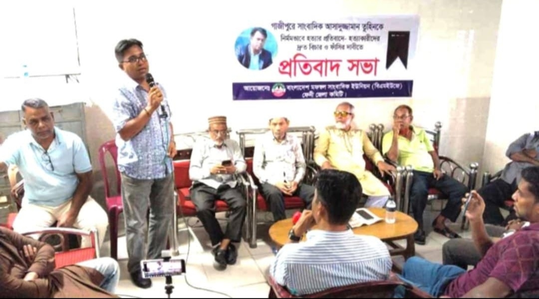 বাংলাদেশ মফস্বল সাংবাদিক ইউনিয়ন (বিএমইউজে) ফেনী জেলা কমিটির উদ্যোগে গাজীপুরে সাংবাদিক আসাদুজ্জামান তুহিনকে নির্মমভাবে হত্যাকারীদের দ্রুত ফাঁসির দাবিতে ফেনী প্রেস ক্লাবে প্রতিবাদ সভা অনুষ্ঠিত হয়েছে।