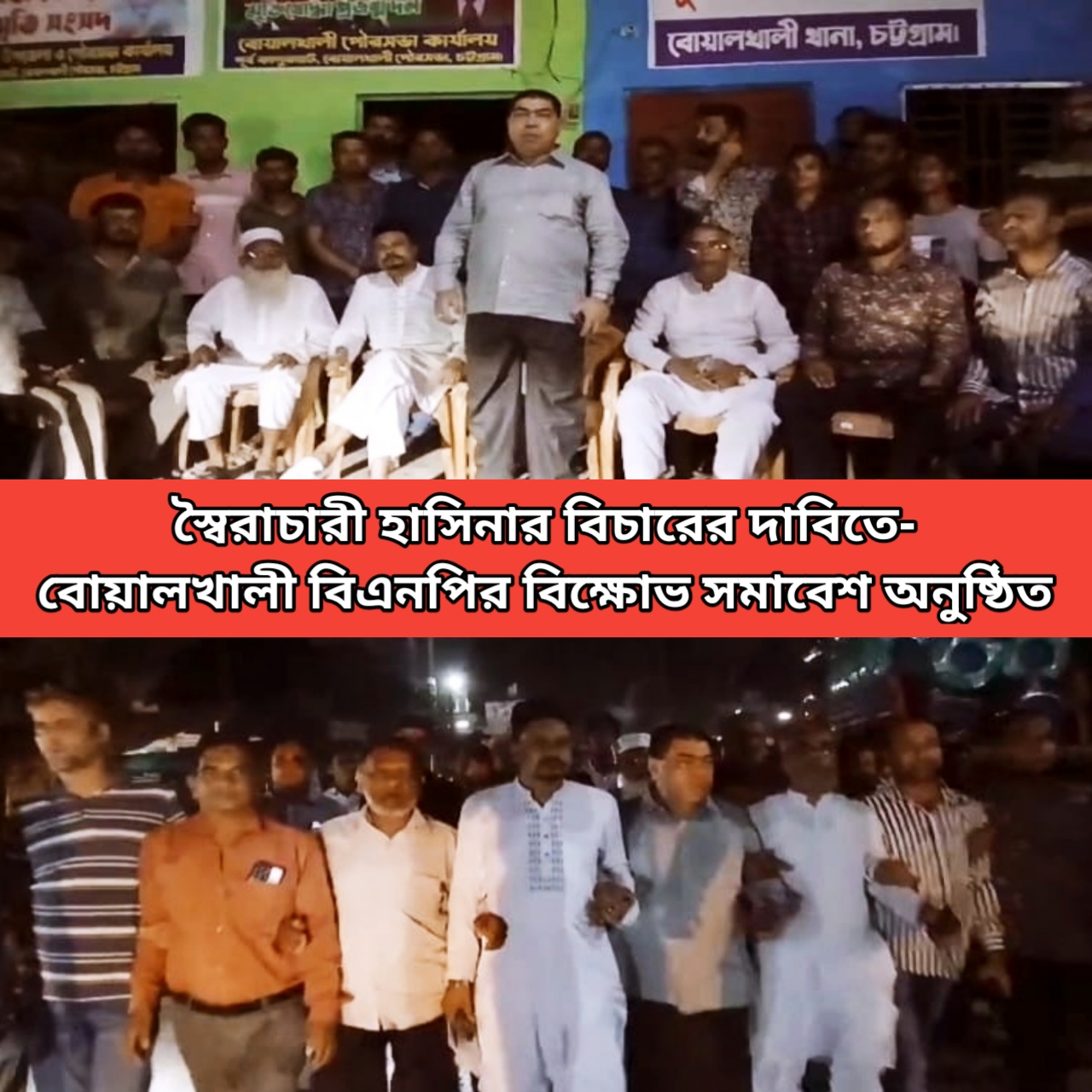 ২৩ এপ্রিল ২০২৫ ইং, বুধনার, সন্ধ্যা ৮ঃ০০ ঘটিকার সময়, চট্টগ্রামের বোয়ালখালী উপজেলার পূর্ব কালুরঘাট সত্তরে আওয়ামী সন্ত্রাসীদের নৈরাজ্যের প্রতিবাদে এক বিক্ষোভ সমাবেশ অনুষ্ঠিত হয়েছে। বোয়ালখালী উপজেলা ও পৌরসভা বিএনপি এবং তাদের অঙ্গ সংগঠনসমূহের উদ্যোগে এ সমাবেশের আয়োজন করা হয়।